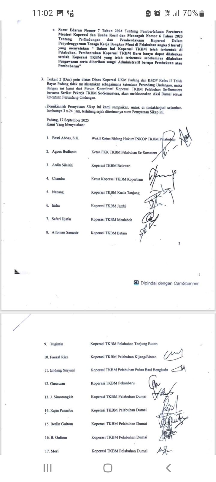 Agoes Budianto, Ketua Forum Koperasi TKBM Pelabuhan Se-Sumatra, mengungkapkan kekecewaannya terhadap KSOP dan Kepala Dinas Koperasi dan UMKM Kota Padang [sebagaimana detail terlampir] berikut ini: