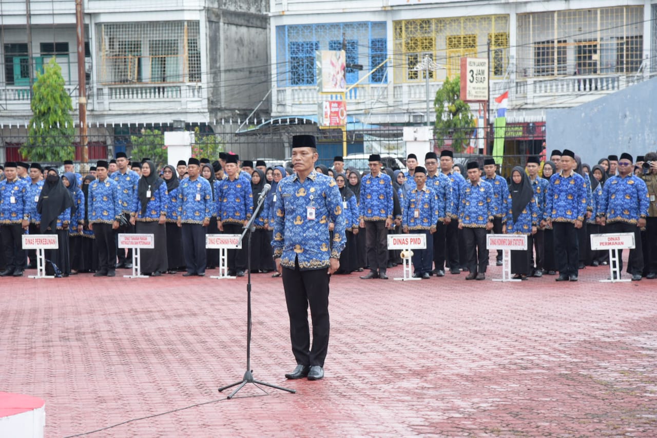 Asisten Pemerintahan dan Kesejahteraan Rakyat Bengkalis, Andris Wasono, bertindak sebagai inspektur upacara pada apel Peringatan Hari Kesaktian Pancasila di halaman Kantor Bupati Bengkalis, Rabu (1/10/2025). (f: joni)