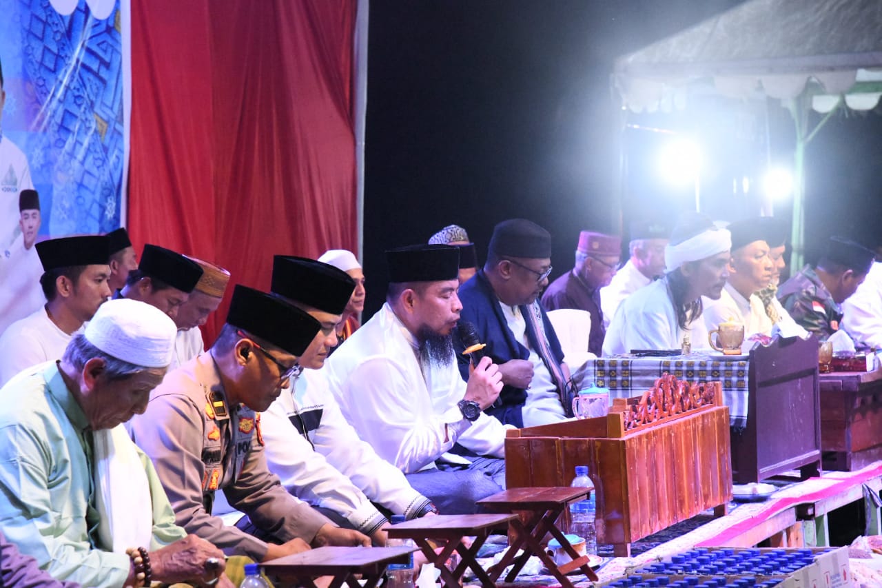 Habib Faisal Zeen Al Habsy menyampaikan tausiah pada Grand Maulid di Kecamatan Bantan, Sabtu (25/10/2025). (f: joni)